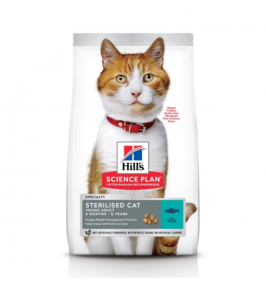 Hill’s Science Plan Sterilised Cat Young Adult met Tonijn kattenbrokjes hebben een unieke samenstelling voor gewichtscontrole om gesteriliseerde/gecastreerde katten slank te houden. Gemaakt met licht verteerbare ingrediënten van hoge kwaliteit.